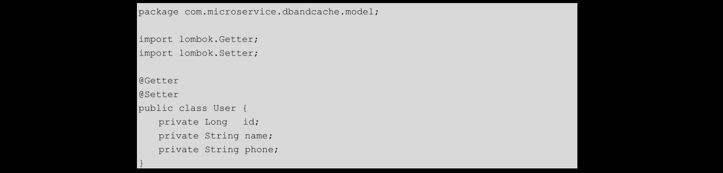前面生成了三个数据访问层的模板文件,下面分别来看一下。首先是模板类com.iafoot.dbandcache.model.User,代码如下: