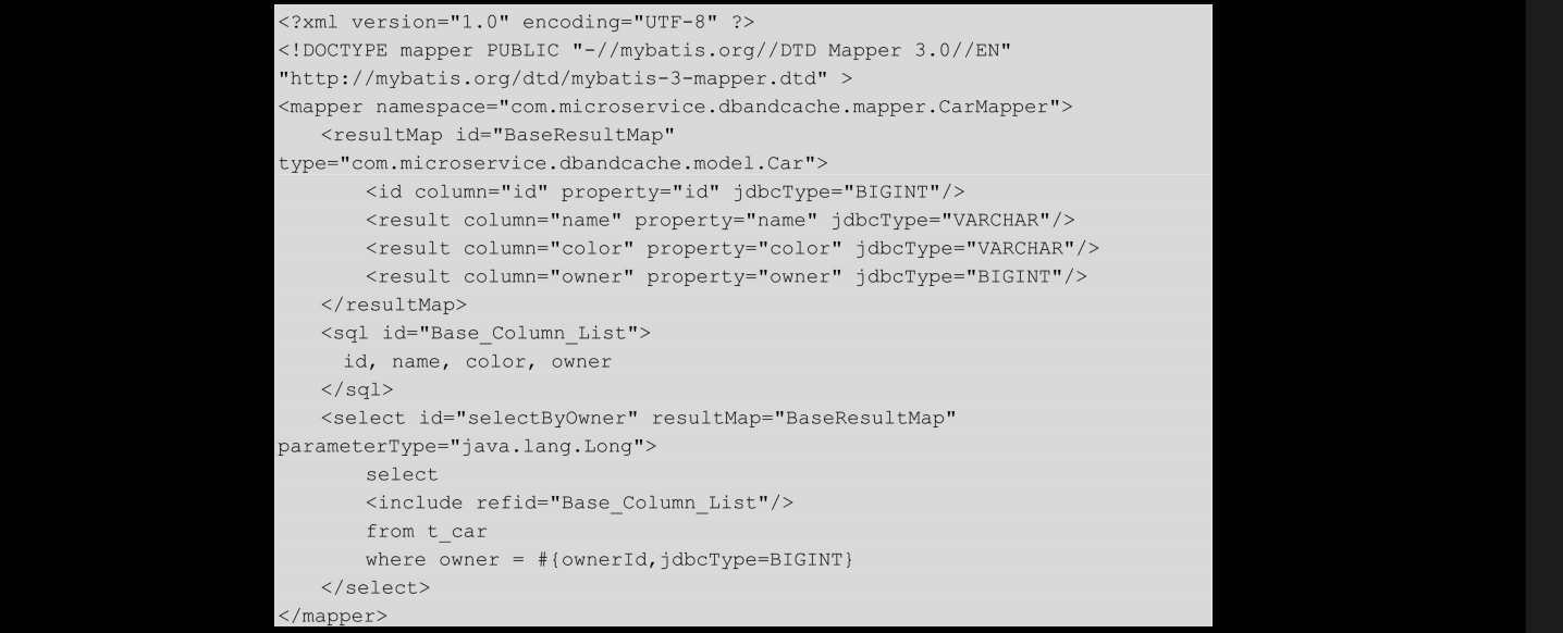 MyBatis-Generator生成的com.microservice.dbandcache.mapper.CarMapper代码如下: