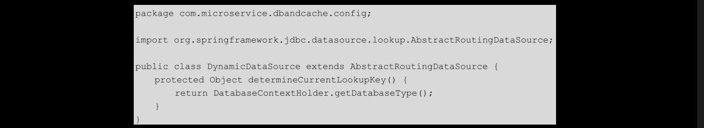 然后集成springjdbc的AbstractRoutingDataSource,实现动态数据源com.microservice.dbandcache.config.DynamicDataSource,代码如下: