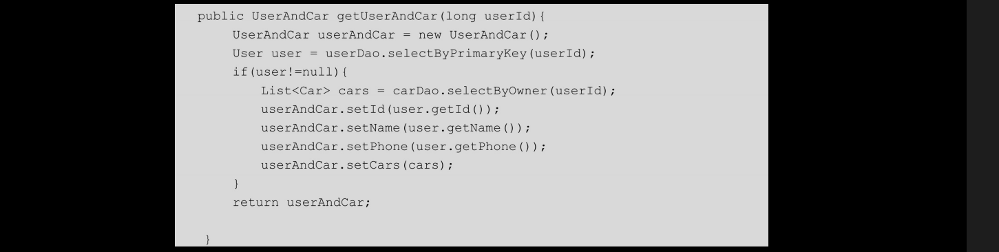 这里只列出关键代码。其中,UserAndCar类代码如下: