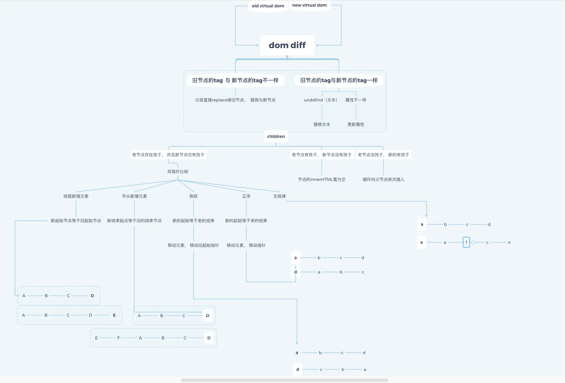 patch函数的作用就是比较新旧虚拟dom的差异, 做到最小量的更新。 也就是我们所说的dom diff