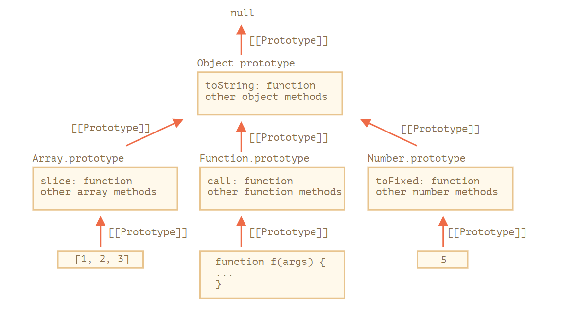 这些对象对我们来说是无形地创建出来的。大多数引擎都会对其进行优化,但是规范中描述的就是通过这种方式。这些对象的方法也驻留在它们的 prototype 中,可以通过 String.prototype、Number.prototype 和 Boolean.prototype 进行获取。
