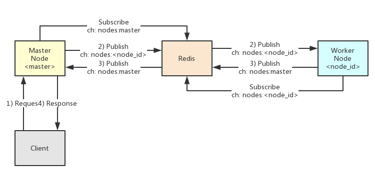 PubSub的<nodes:<node_id>通道发布消息给相应的工作节点; - 工作节点收到消息之后,执行一些操作,并将相应的消息通过