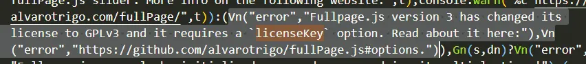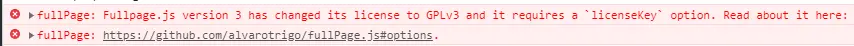 这里会遇到一个问题: 新版本的fullPage需要强制在props加入licenseKey属性.