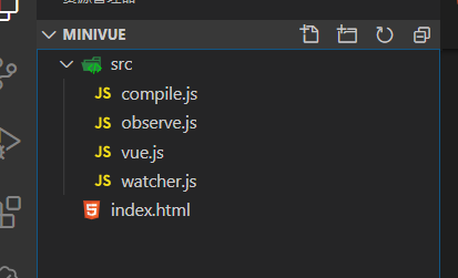- watcher.js :将Compile的解析结果,与Observer所观察的对象连接起来,建立关系,在Observer观察到对象数据变化时,接收通知,同时更新DOM