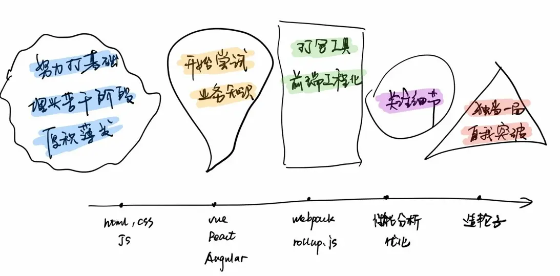 具体比较深入的知识我就不细说了,上面只是前端学习比较大体的方向,而且这也是我本人的学习方向,并不代表前端就应该是这样子的过程。但是一般来说大部分同学都会经历这样的一个过程,学习总归是有一个步骤的,很多事情并不是一蹴而就的,相信大家可以根据自己的自身情况,打造出属于自己的学习路线。