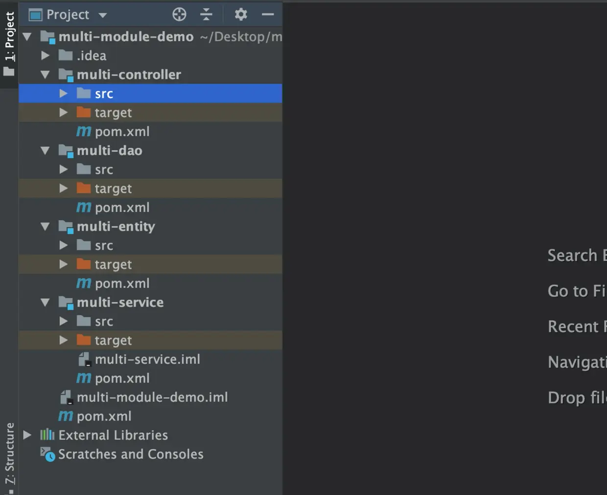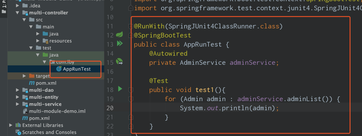 * 是因为 multi-service 模块 依赖了 multi-dao