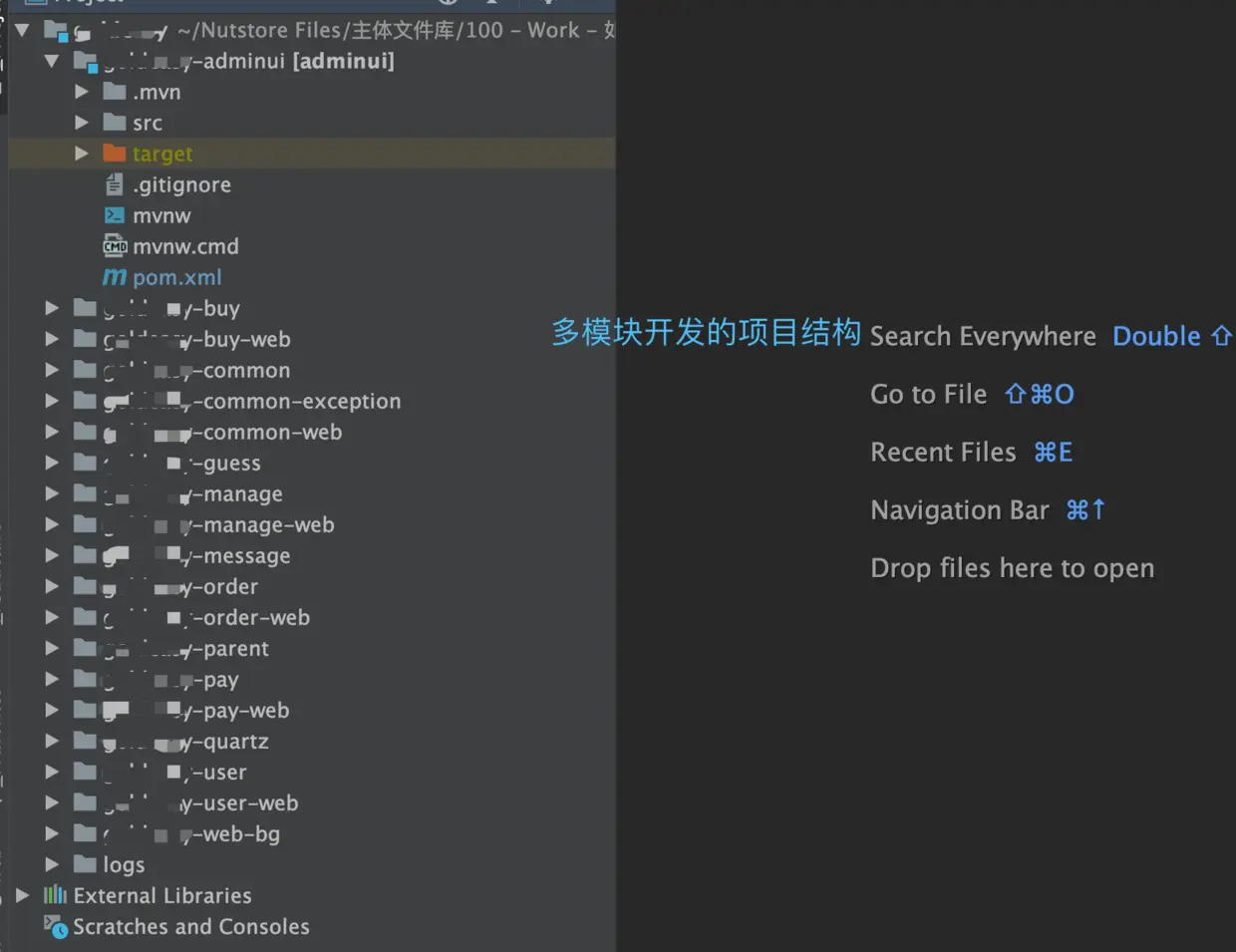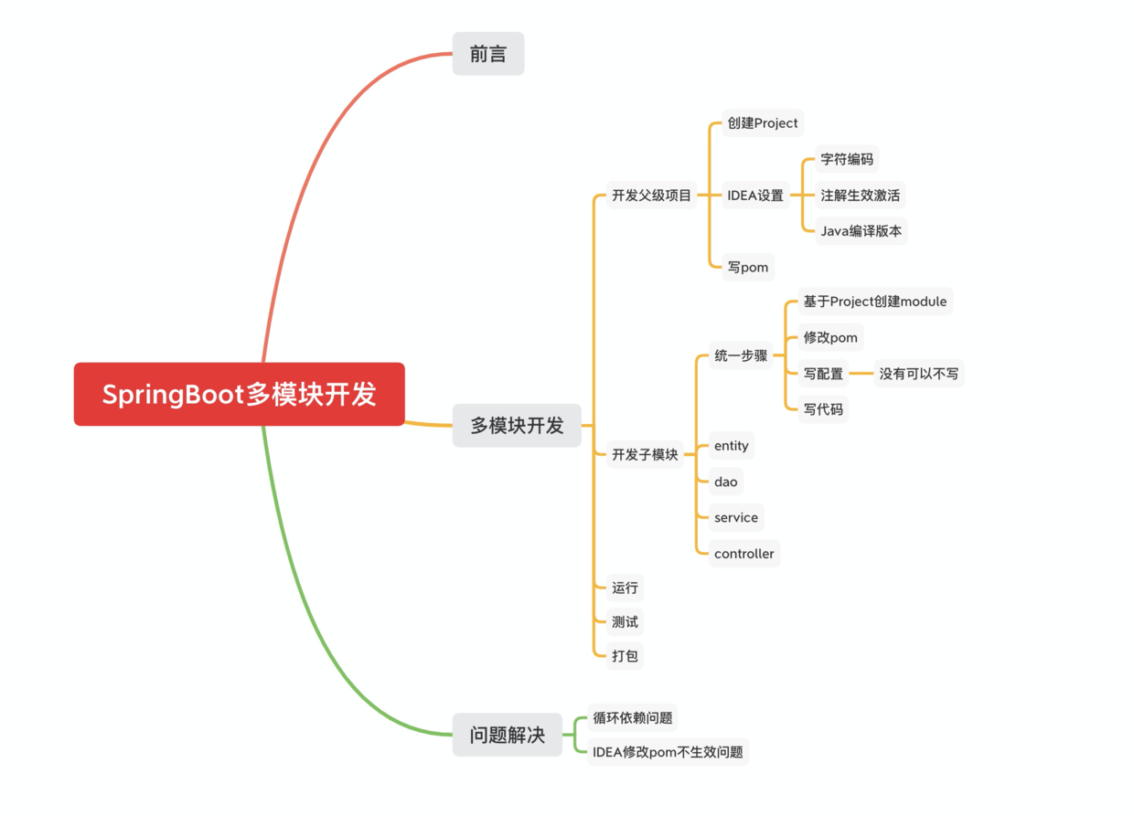 什么是多模块开发?如图所示,项目中每一个包对应都是一个完整的项目,在IDEA中称之为模块,每一个模块都有完整的项目结构:独立的pom文件,独立的配置文件,独立的编译文件输出模块等等。