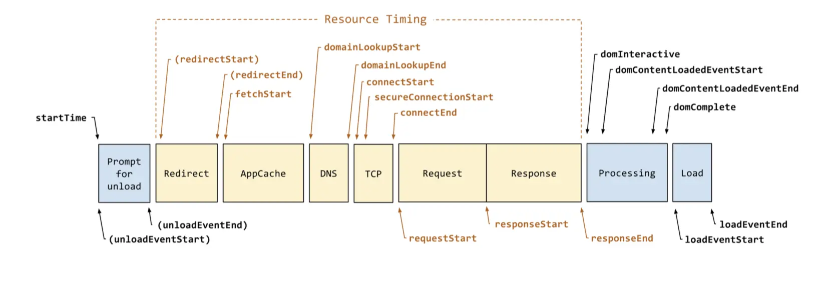 从开发者实际分析使用的场景,浏览器重定向、卸载页面的耗时对页面加载分析并无太大作用;通常建议使用 fetchStart 作为统计起始点。 -