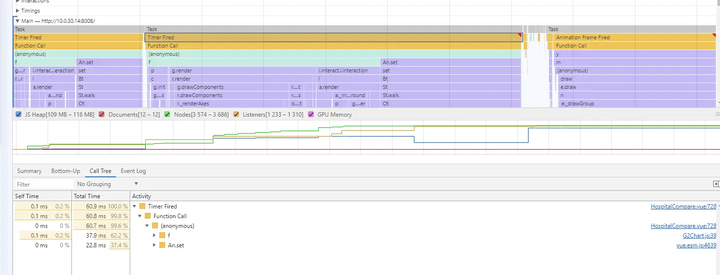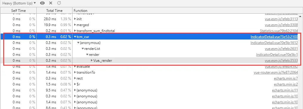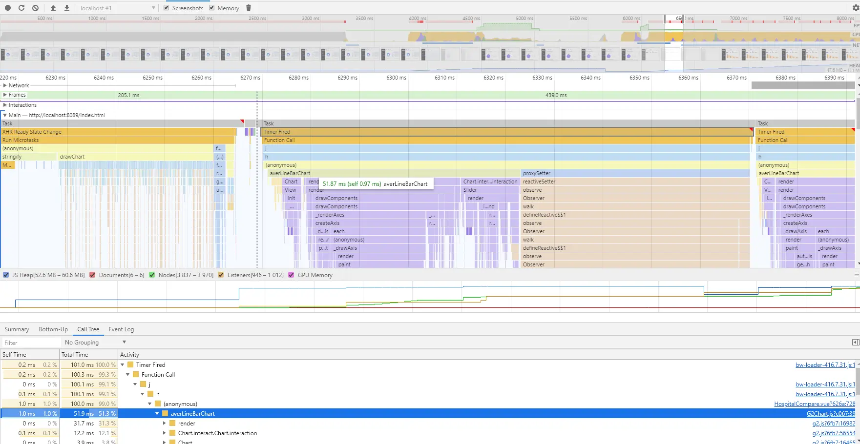 在call tree当中我们可以清晰地看见调用堆栈以及其所花费的时间。 - 查看交互