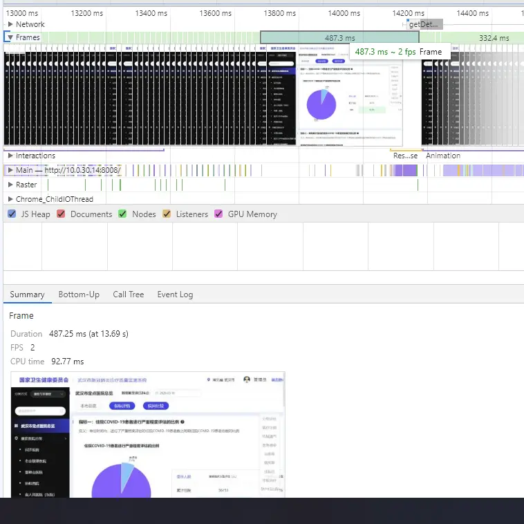 借助chrome提供的performance monitor工具,我们可以实时直观的监控页面性能。