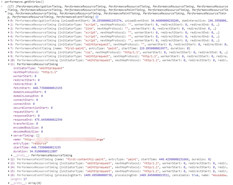 - name表示:资源名称,也是资源的绝对路径,可以通过performance.getEntriesByName(name属性的值),来获取这个资源加载的具体属性