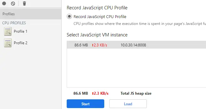Disable JavaScript samples 禁用和启用JavaScript示例。禁用后,记录的主要部分要短得多,因为它忽略了所有JavaScript调用堆栈。