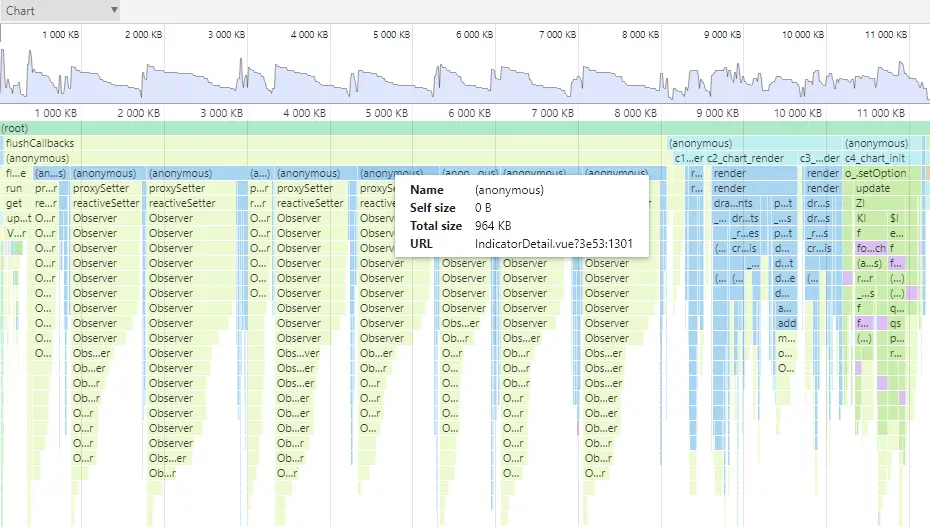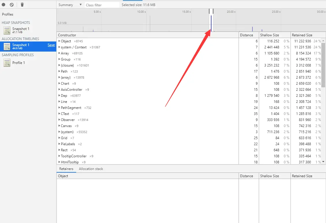 与前面的JavaScript profile一样,只不过cpu数据变成了内存