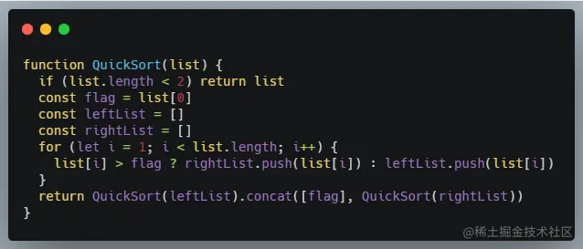 return QuickSort(leftList).concat([flag], QuickSort(rightList))