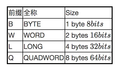 你可能会看到这种指令movl,movw,mov后面的l、w是什么鬼?