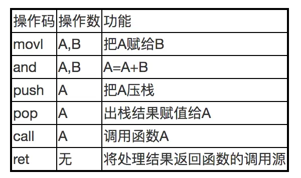 最后说说指令本身,**每个CPU类型都有自己的指令集,就是告诉CPU干啥,比如加、减、移动、调用函数等。**下面是一些非常常用的指令: