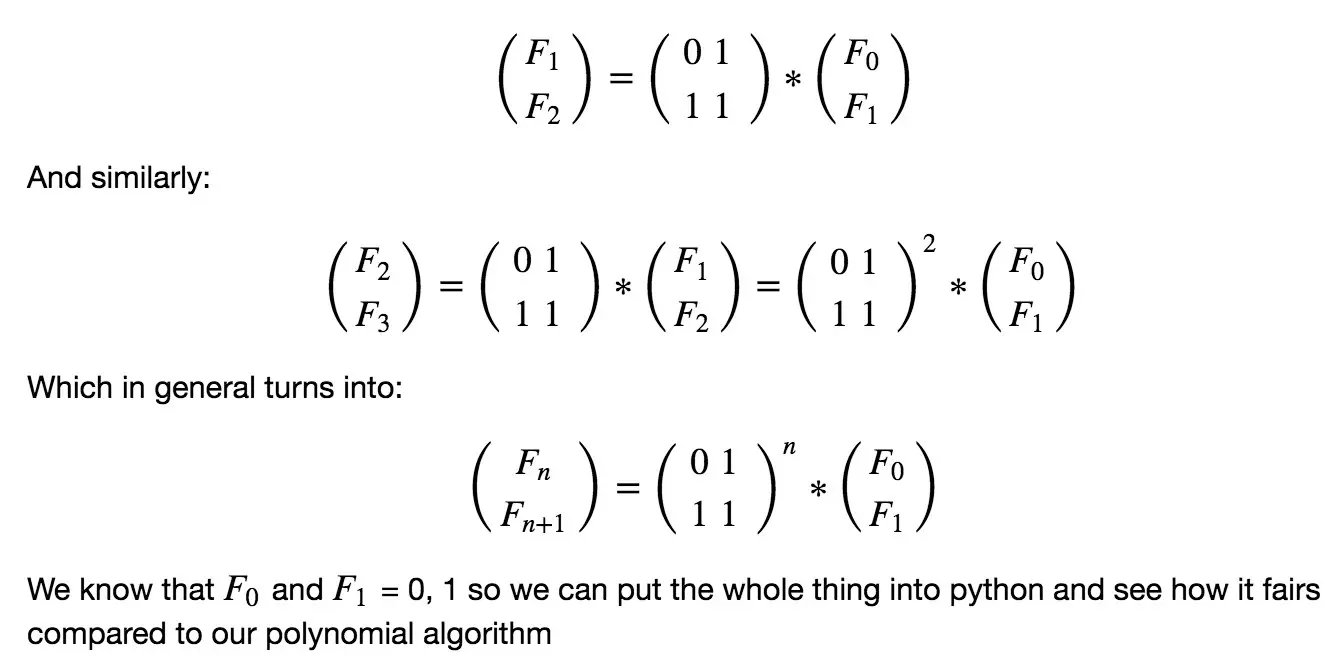 如下所示,可以用矩阵的方法计算斐波那契数列,会更快。