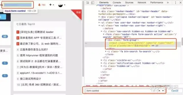 要定位testerhome首页的搜索框,就可以根据ClassName,如下图: