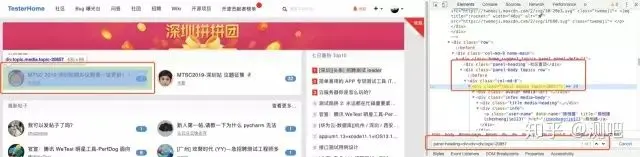 另外CSS也可以将属性和层级关系组合在一起进行使用,现在我们以这种组合方式来定位testerhome社区置顶帖的第一篇帖子: