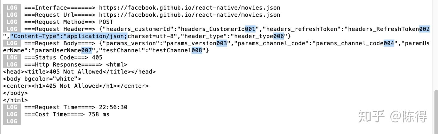 通过控制台打印的日志,我们可以很清晰的看到,参数从001~008所有的参数(除了005)都能有效设置到请求当中。但为什么公共参数 params.testChannel = 'testChannel005'; 的设置没有生效呢,其实是因为,XHttp中的接口请求的私有参数中也设置了一个:testChannel: 'testChannel008' 的参数,两者的Key相同,所以被接口私有参数给覆盖了(细心的同学也可以发现,日志中'Content-Type': 'application/json',contentType的类型也被覆盖了),这说明了接口的私有参数具有更高的优先级,这是合理的同时也使接口的请求更灵活方便。
