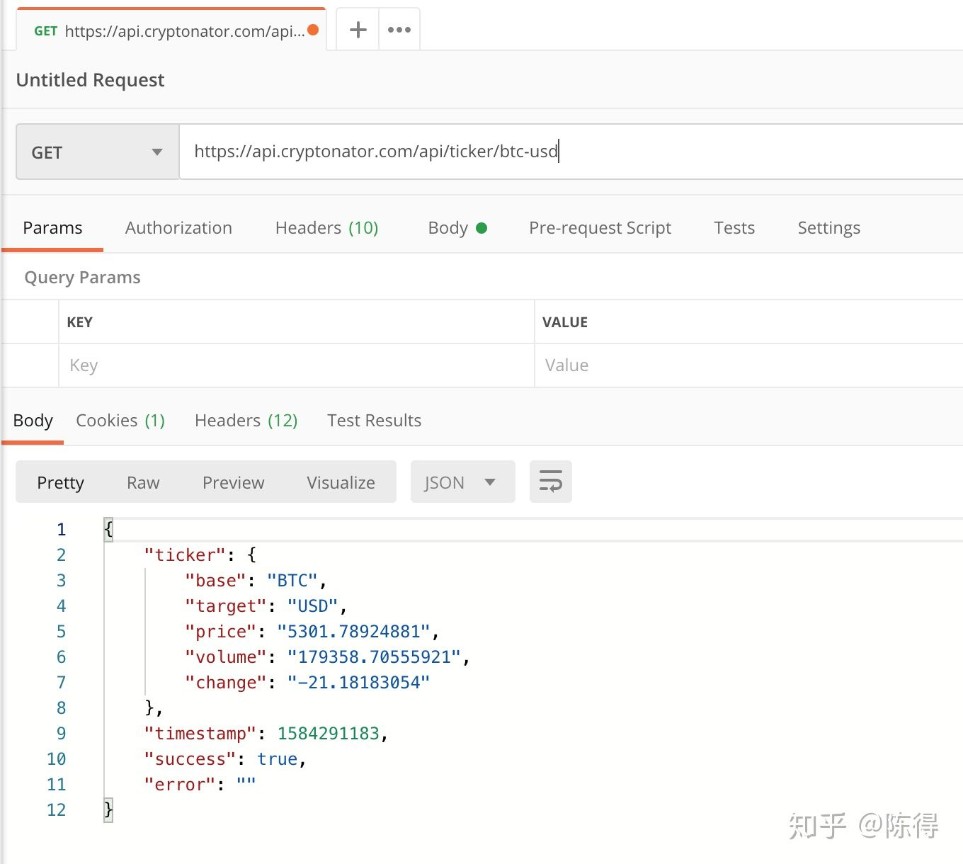 每个app都有一套前后台数据交互方式,对于返回的数据都有统一固定的格式:方便前端解析处理,如 cryptonator.com 网站提供的比特币查询接口,接口url:api.cryptonator.com/api/ticker/…。我们先通过postman请求一下: