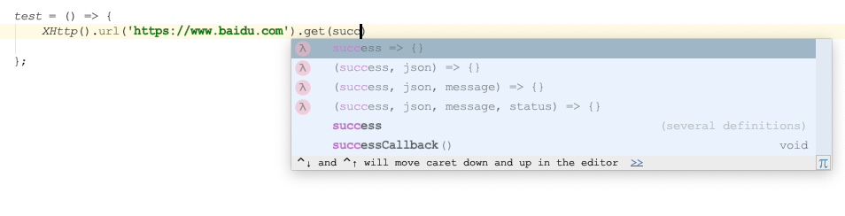 XHttp('SB').url(url) .get((success, json, message, status) =>{