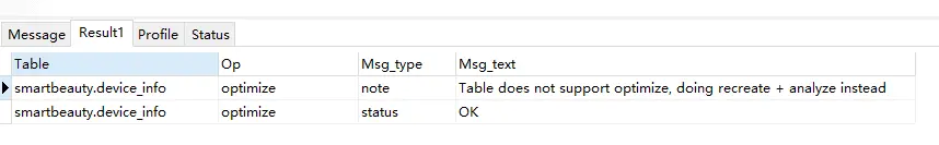如果之前的碎片数量多,执行时间可能会久一点,执行结束后出现下面框内的数据则优化成功。