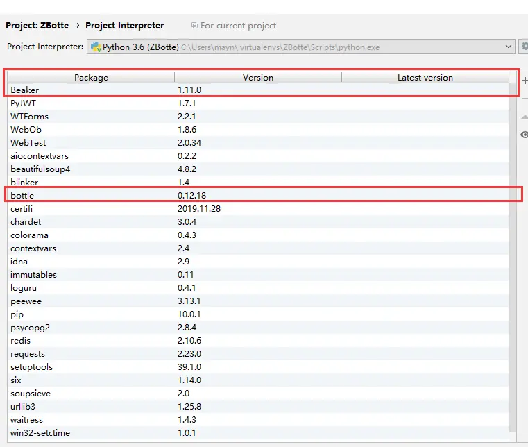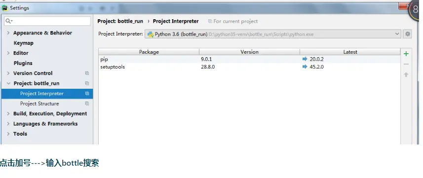 点击加号--->输入bottle 和 搜索 Beaker 安装: