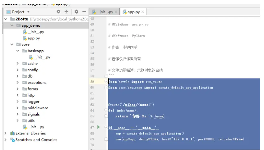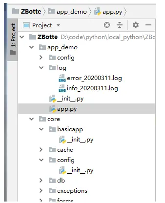 在app_demo 下 新建一个app.py文件,通过引入的方式来使用App实例对象,使用AppDemo启动示例程序