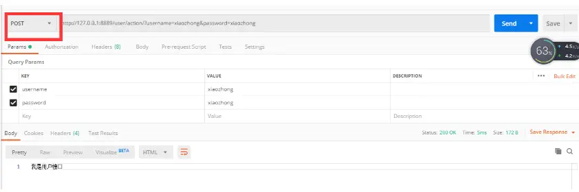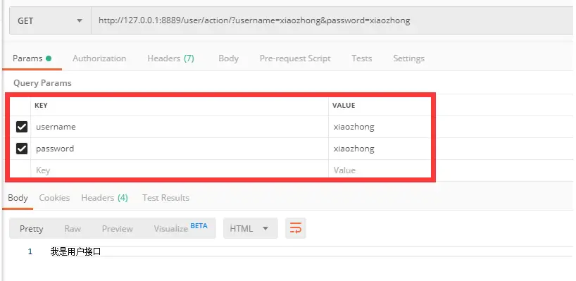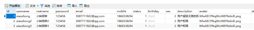 然后我们再我们的接口处完整的调一我们的数据库查询接口 新建一个测试数据库记录