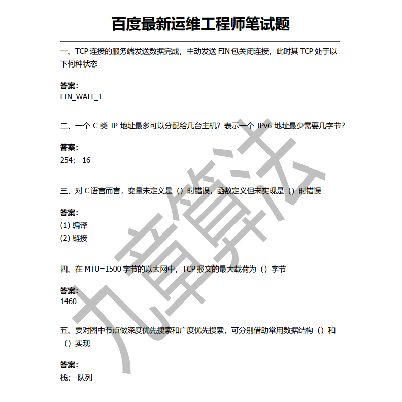 2020年百度运维工程师笔试真题(附答案) JUUUNEEE 2020-03-17 1,121 阅读1分钟 前几天分别给了华为、网易和百度的一些岗位真题,今天给大家的是2020年最新百度运维工程师笔试题目和答案。 给小伙伴们参考一下~ 除此之外,我这边还有今年百度一些岗位的面试真题和面经,需要的小伙伴私信我哈~