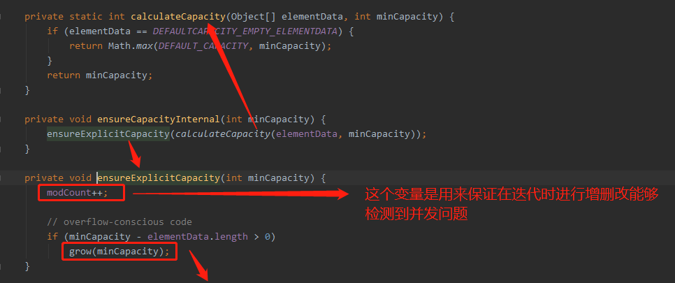 在并发情况下,由于Vector在增删方法中都加入了synchronized关键字,而ArrayList是没有的,所以Vector在并发情况下是可以安全进行增删的,但是对应的效率会比较低。细心的同学会发现,在涉及到增删的方法中,都出现了modCount这个变量,这个变量到底有什么用,这个就是下篇文章要提到的,感兴趣的可以阅读一下我的下篇文章《Java容器类迭代器的细节》。