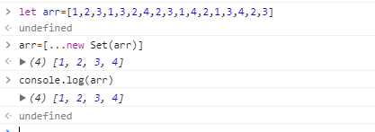 我当时看到这种写法惊为天人,这种写法也太方便了吧,再也不用写循环了(视情况而定)。看到上边的代码我觉得还是有点麻烦,我可是立志要成为高级程序员的人,所以把代码合并在一起就有了下边的一行数组去重代码。