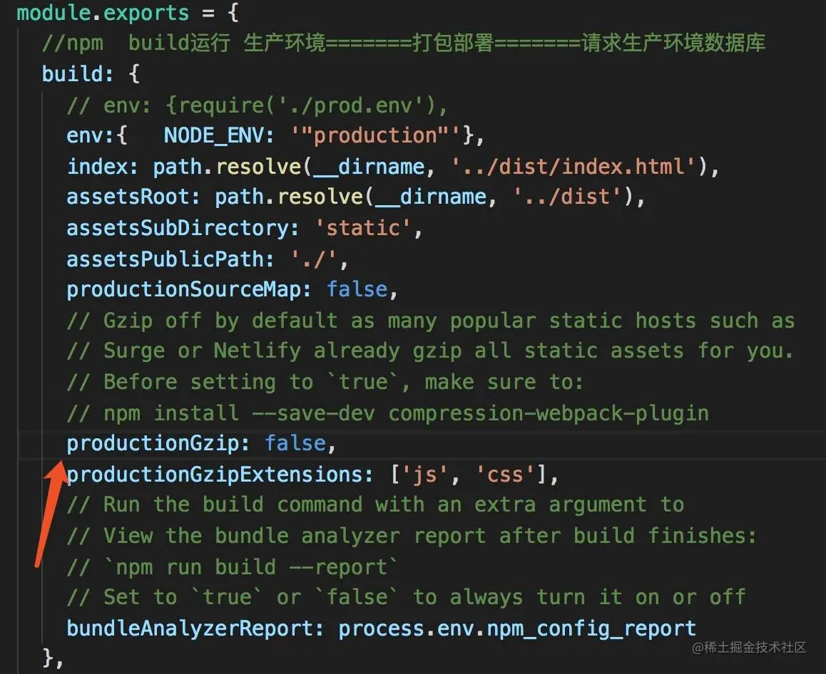 在 config/index.js 设置 productionGzip 为 true,开启 Gzip 压缩