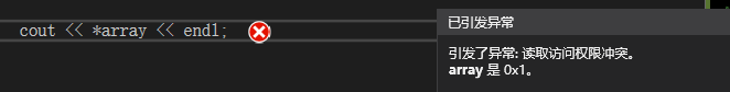 引发异常,读取权限冲突 upup 2020-03-17 251 阅读1分钟 问题: 引发异常,读取权限冲突 int main() { int b = 1; const int a = b; int *array = (int*)a; cout << *array << endl; } 错误的给指针 *array 初始化,赋值了一个常量 解决办法: (int*)将 const int 强转 为 int* int *array = (int*)&a;