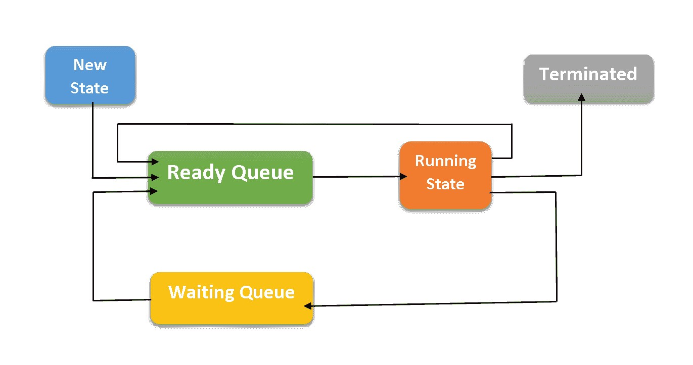 就绪态:万事俱备(运行需要的条件都有了),只欠东风(只等 CPU 空闲下来,好让自己在上面运行)