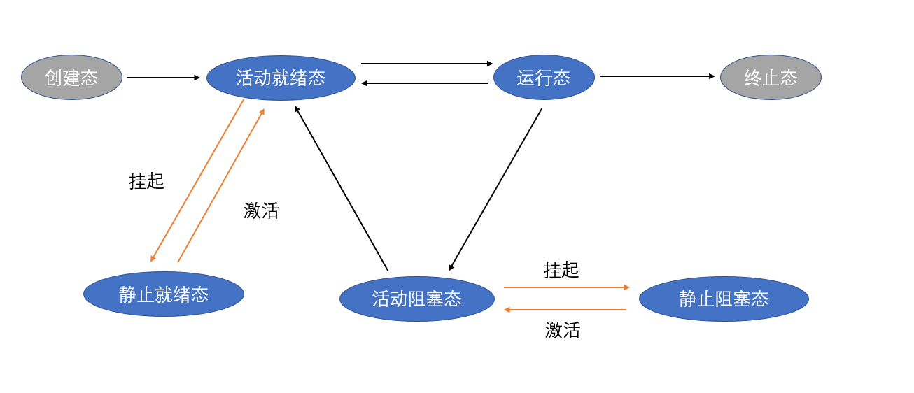 | 活动阻塞态→ 静止阻塞态 | 操作系统根据当前资源状况和性能要求,可能会把活动阻塞态对换出去,成为静止阻塞态。 |