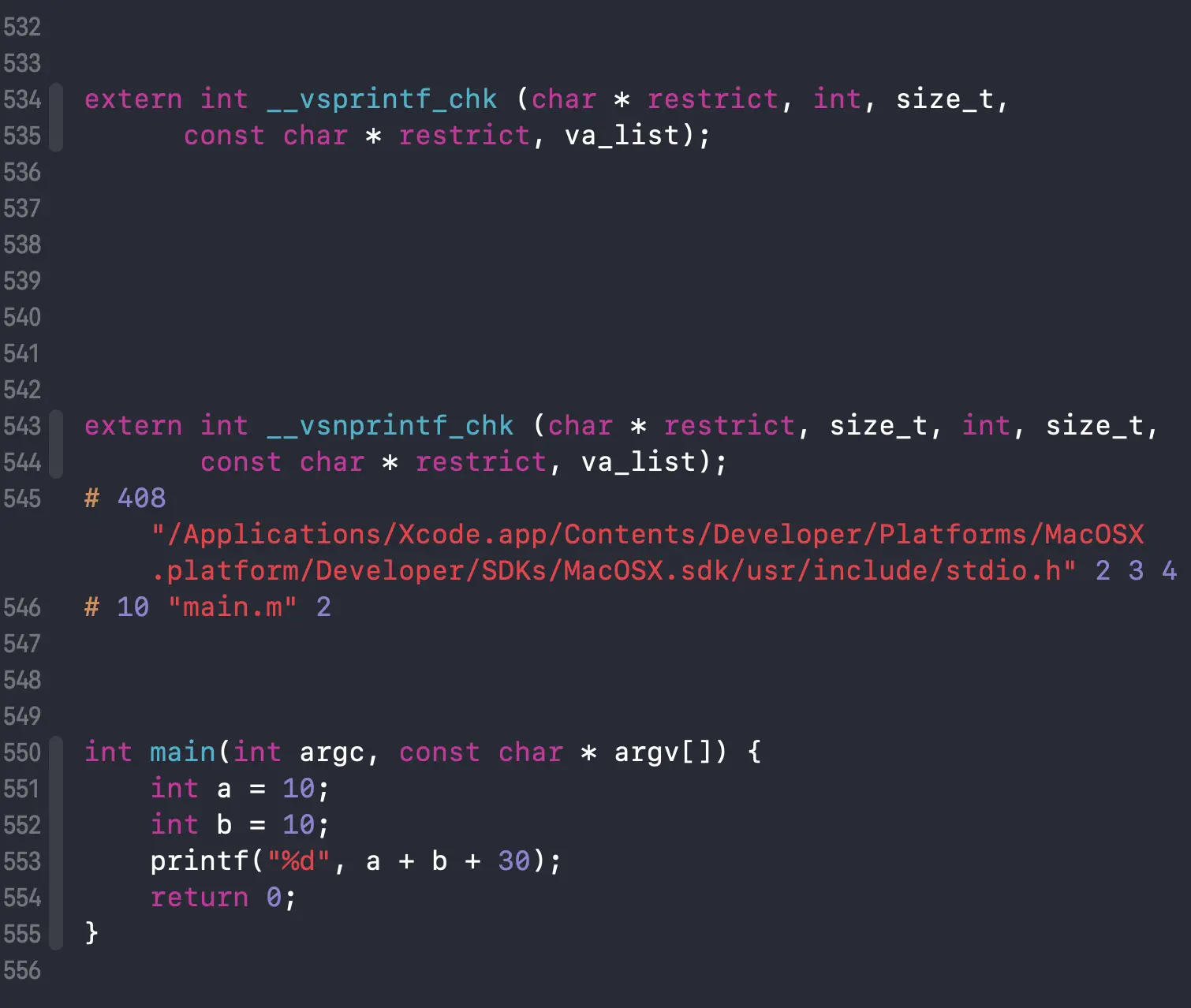 clang -E main.m >> mian2.m