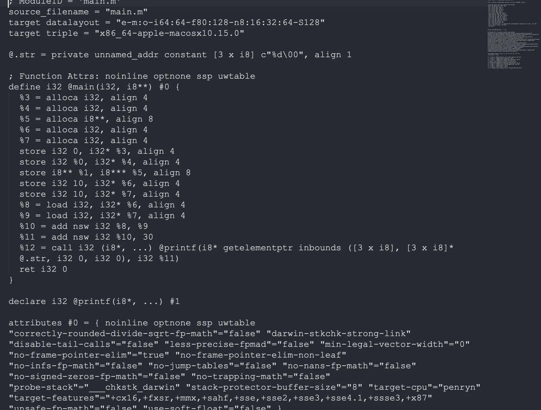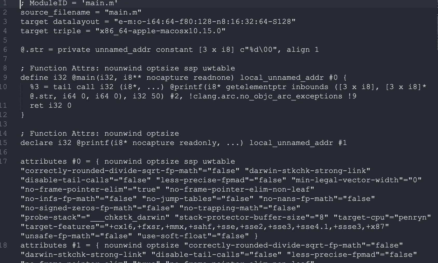 clang -Os -S -fobjc-arc -emit-llvm main.m -o main.ll