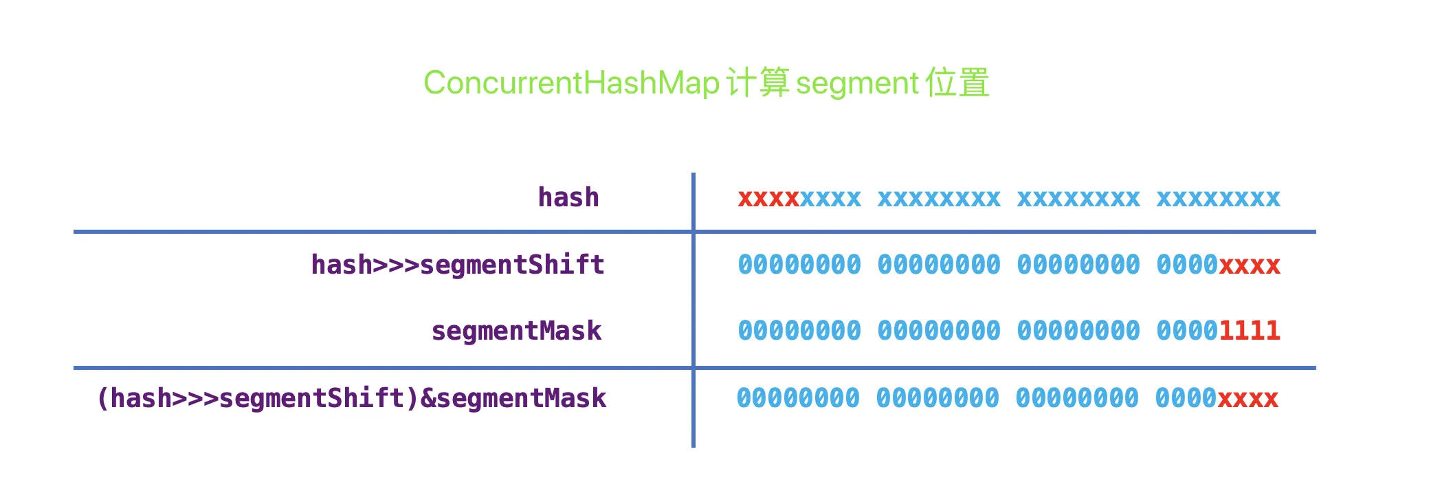 // 段偏移量,32是因为hash是int值,int值32位,默认值情况下此时segmentShift = 28