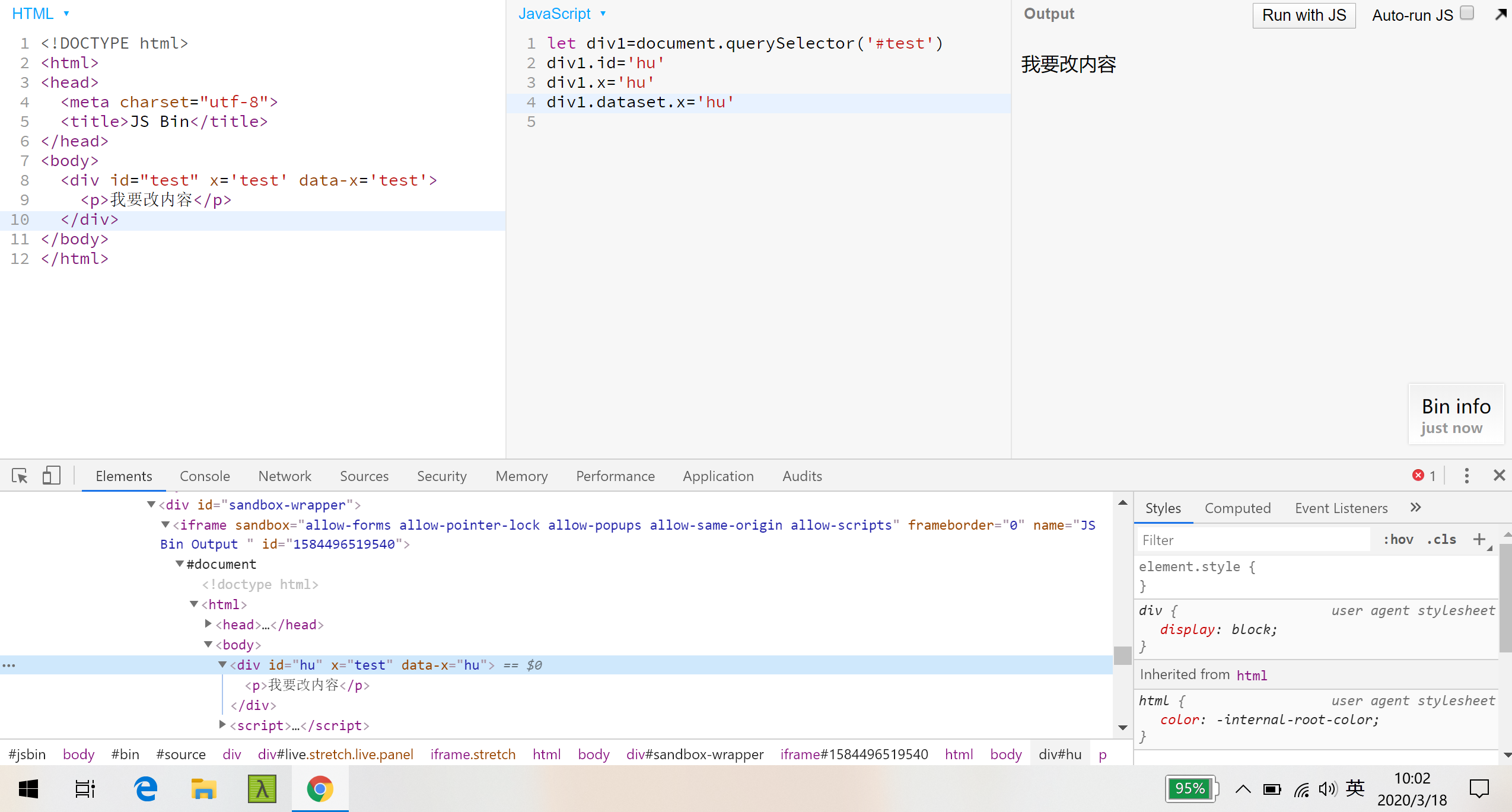 - property:属性,表示JS线程内div这个对象的所有属性。 id,className,style