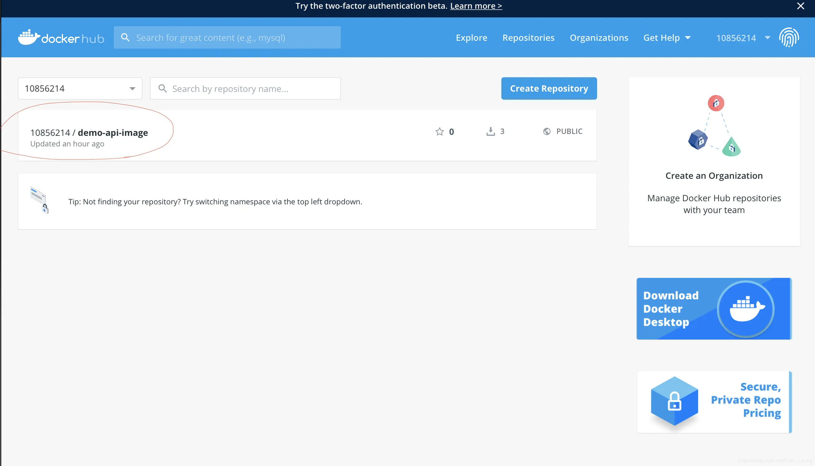 Status: Image is up to date for 10856214/demo-api-image:latest