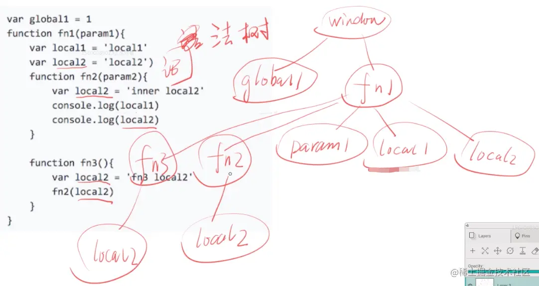 - 一个函数能访问哪些变量,在词法分析时已经确定,与执行顺序,调用顺序没有关系,与具体值无关(看下一个例子),只分析语义。