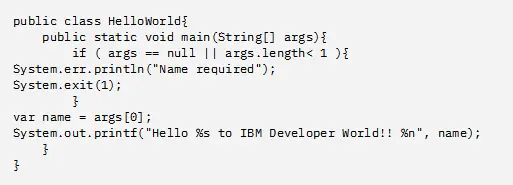如果你想起Java SE 11(JDK 11)之前的过去,可以说你有一个HelloWorld.java源文件,其中包含类定义和静态main方法,该方法以单行文本的形式输出到终端: