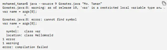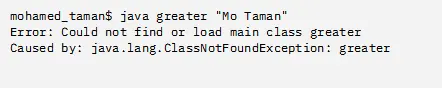 现在让我们首先检查第二种情况,并重命名Greater.java为greater没有任何扩展名,然后尝试使用相同的方法再次执行它: