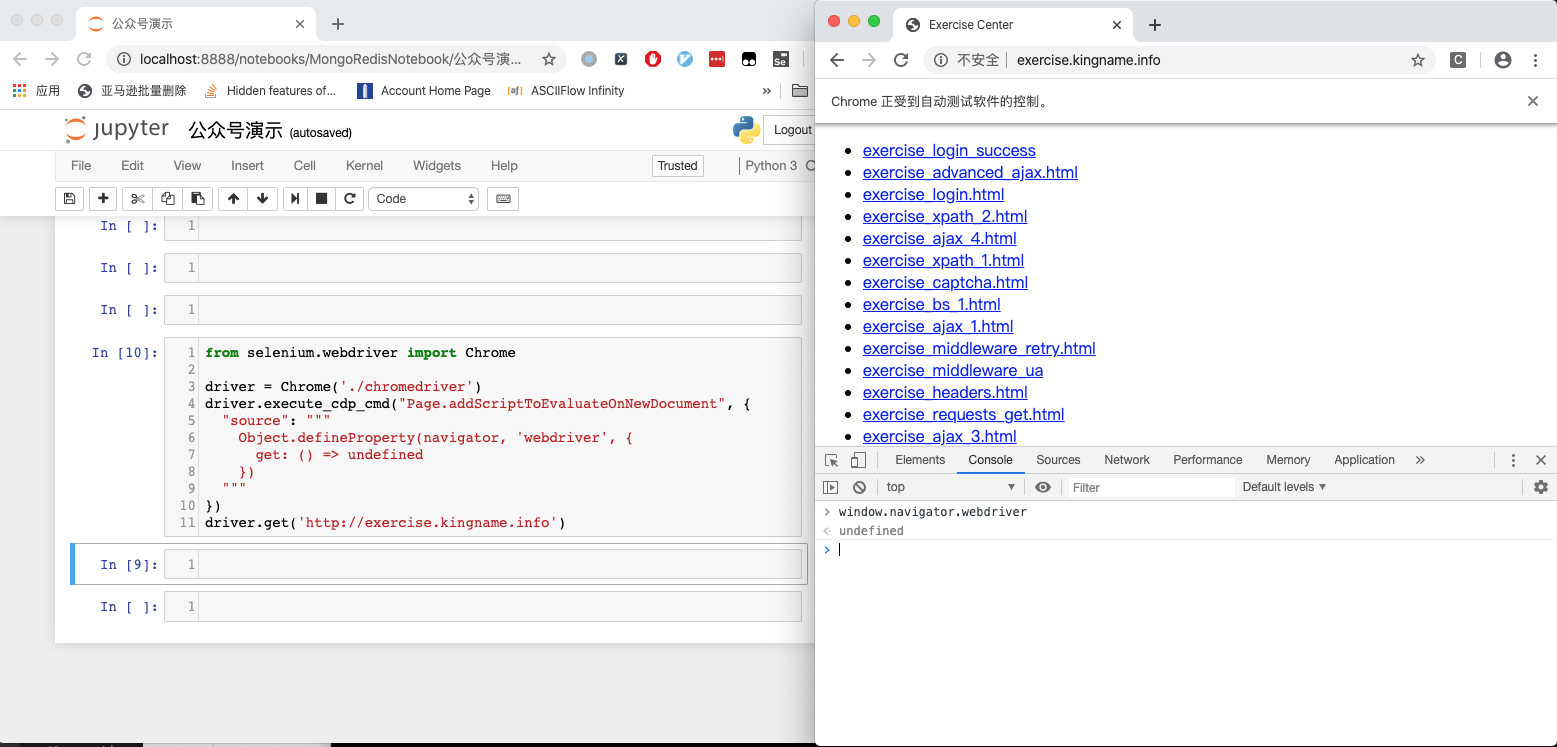 我骂了这种方式为掩耳盗铃,是因为他们是在网页已经加载完毕以后才运行这段 JavaScript 代码的,可此时网站自身的 js 程序早就已经通过读取window.navigator.webdriver知道你现在使用模拟浏览器,你隐藏了又有什么用呢?