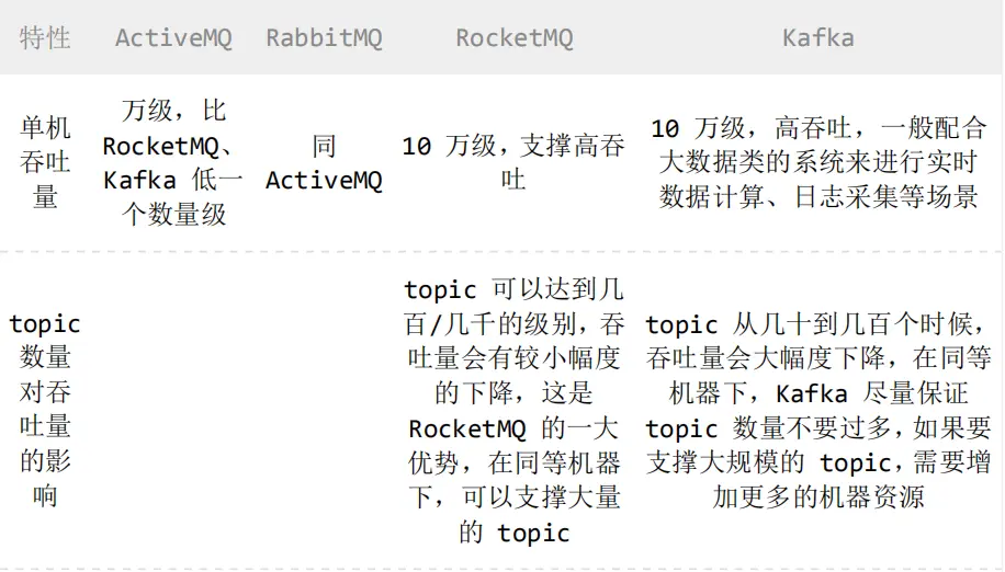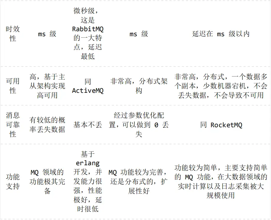 Kafka、ActiveMQ、RabbitMQ、RocketMQ 有什么优缺点?