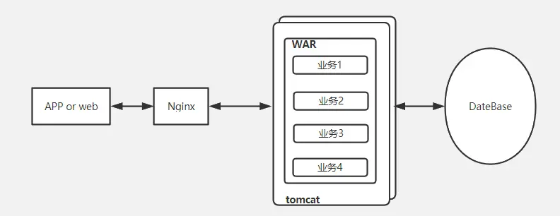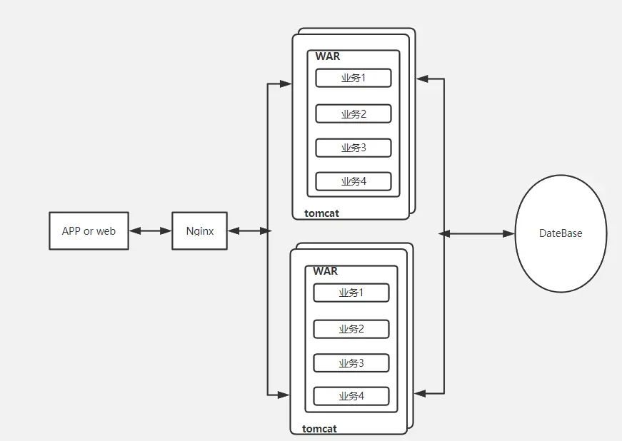 虽然通过集群可以提升并行处理能力以及对于高可用的实现,但是同时还需要考虑到业务的复杂度,如果仍然把所有的业务逻辑全部耦合在一起放在一个 war 包中来管理,那对于代码的维护和扩展来说是非常困难的。