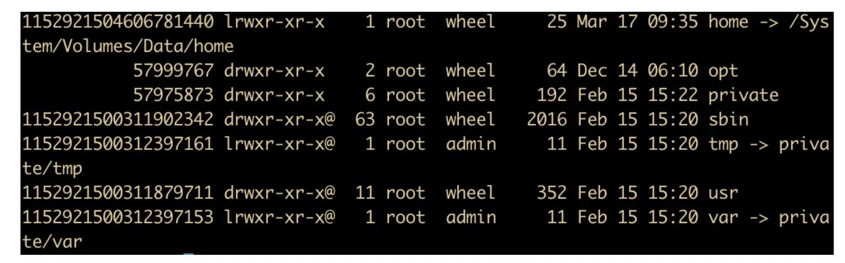 有一种简单的方法可以找到它们 ls -lai 命令。让我们看一下根文件系统: